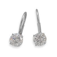 Rhodium plated sterling silver lever back earrings with 6mm clear CZ.