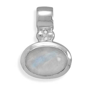 9mm oval rainbow moonstone with polished sterling silver edge pendant.