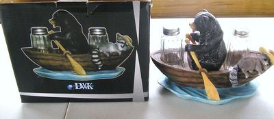 Black Bear Raccoon Salt Pepper Set Free Ride Lodge Cabin NIB FREE SHIPPING