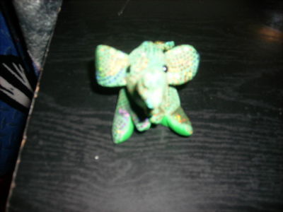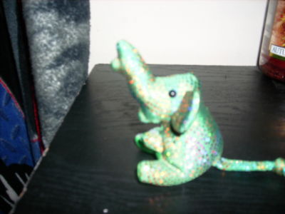 GREEN ELEPHANT COVERED IN SEQUENCE. IT ONLY STANDS ABOUT 1 1/2 INCHES TALL, BUT HE REALLY IS ADORABLE. FOR ANYONE WHO MIGHT COLLECT ELEPHANTS THIS WOULD BE A GREAT ADDITION TO YOUR COLLECTION. HE IS IN PERFECT SHAPE. SHOULD YOU HAVE ANY QUESTIONS FOR ME AT ALL PLEASE FEEL FREE TO CONTACT ME AT [email protected]. ENJOY YOUR BIDDING ON EBAY!