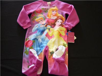NWT NEW Girls DISNEY PRINCESS Sleeper Footed Pajamas 2T