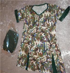 NEW SEQUIN SOLIDER ARMY MARINES CAMO DRESS Halloween Costume Girls size M 8-10