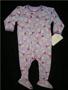 Carters Super-Comfy light weight Zipper-quicker sleeper Once piece sleepwear for quick diaper changes and extra snugness Purple with a snowman design skid proof feet 100% polyester Flame Resistant