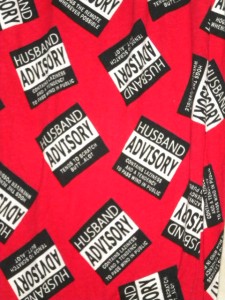 "HUSBAND ADVISORY - CONTAINS LAZINESS AND A TENDENCY TO PASS WIND IN PUBLIC"