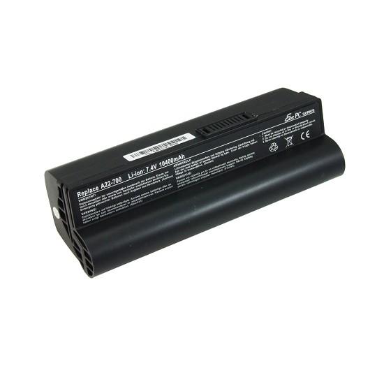 Compatible notebook models: ASUS EeePC 701, 900 (4400mAh) Compatible part numbers: A22-700B (EEE PC) Battery Type: Li-ion Voltage: 7.4V Capacity: 10400mAh Color: Black