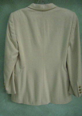 Escada beige cashmere jacket with black EE logo buttons trimmed in gold-classic, forever chic jacket to add to your wardrobe. Luxurious and super soft cashmere with classic details as flap pockets on front (sewn closed), 3 button closure and 3 buttons on each cuff.