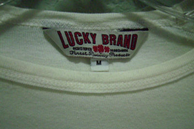 Lucky Brand Dungarees ivory long sleeved T-shirt-SUPER soft and comfy with cuffed 3/4 sleeves and a hemline finished with inside seam stitching.