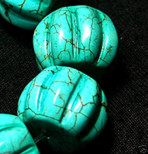 10X14mm Carved Blue Turquoise Roundlle Beads (17pcs)-Dyed
