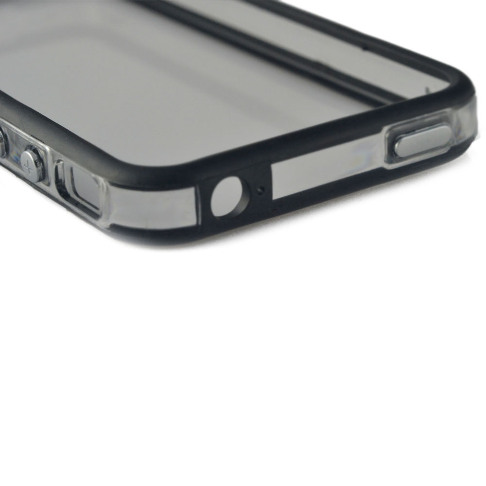 Black Clear Bumper Frame Case Cover w Metal Buttons for Apple iPhone 4 4S 4G
