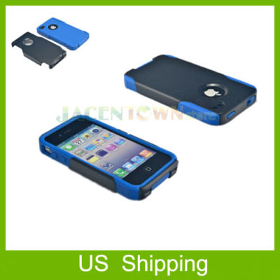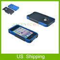 Blue/Black Silicone 2-Piece Rubber Case Cover Skin Frame for Apple iPhone 4 4G