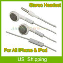 White Earphone Headphone Headset w/ Mic Microphone for iPhone 3G 3GS 4 4G & Ipod