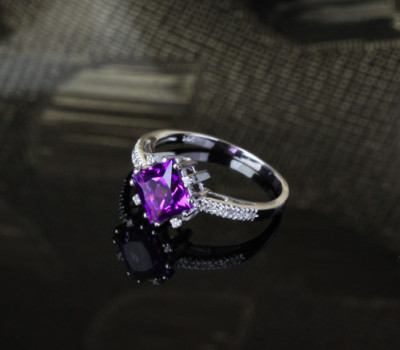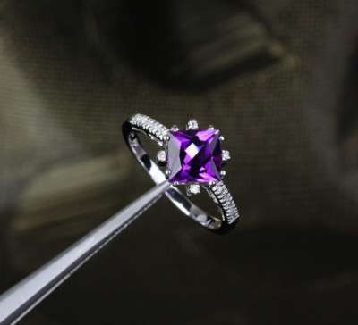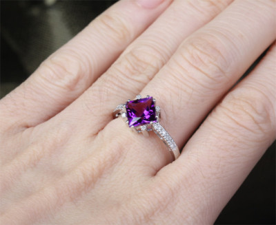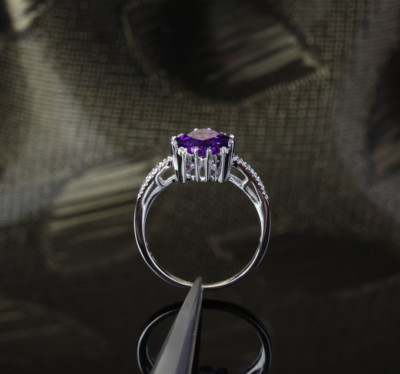 Gorgeous 6.5mm Amethyst & Pave Diamond 14K Gold Ring