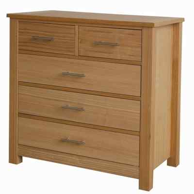 It comprises three standard drawers and two smaller drawers.