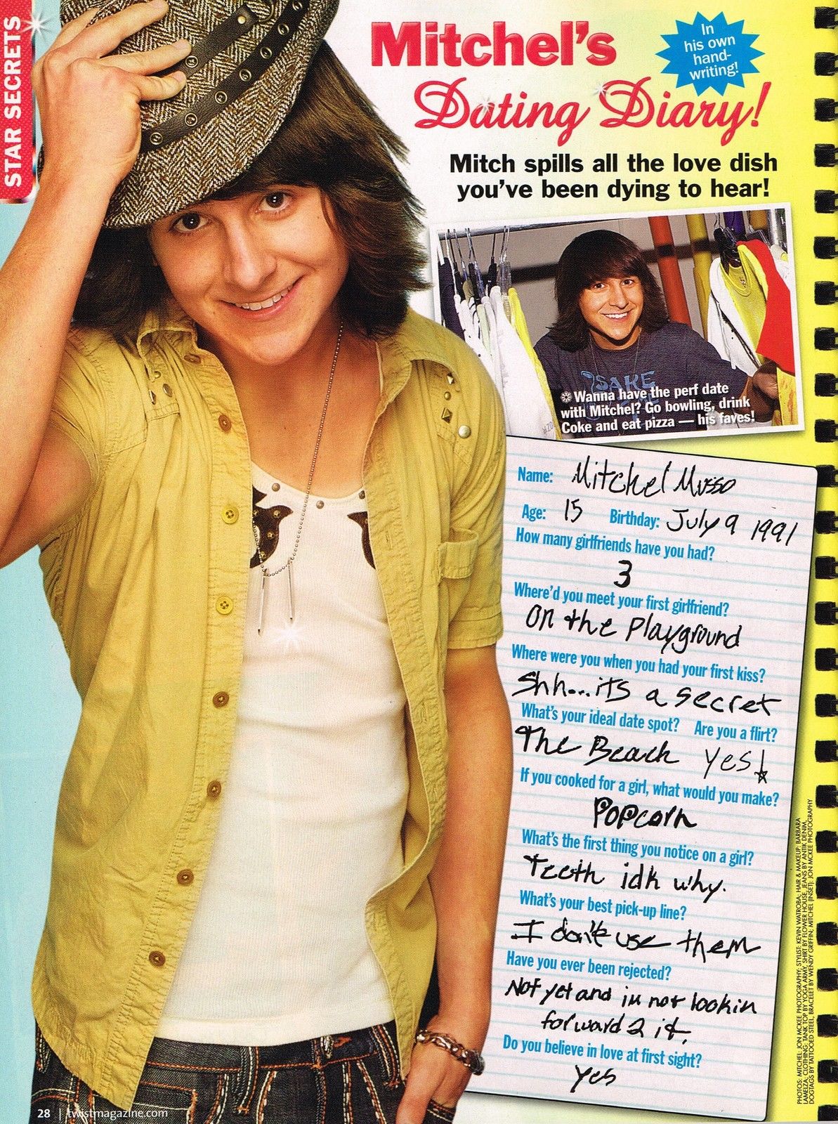 MITCHEL MUSSO - 11" x 8" MAGAZINE PINUP - MINI POSTER - TEEN BOY ACTOR
