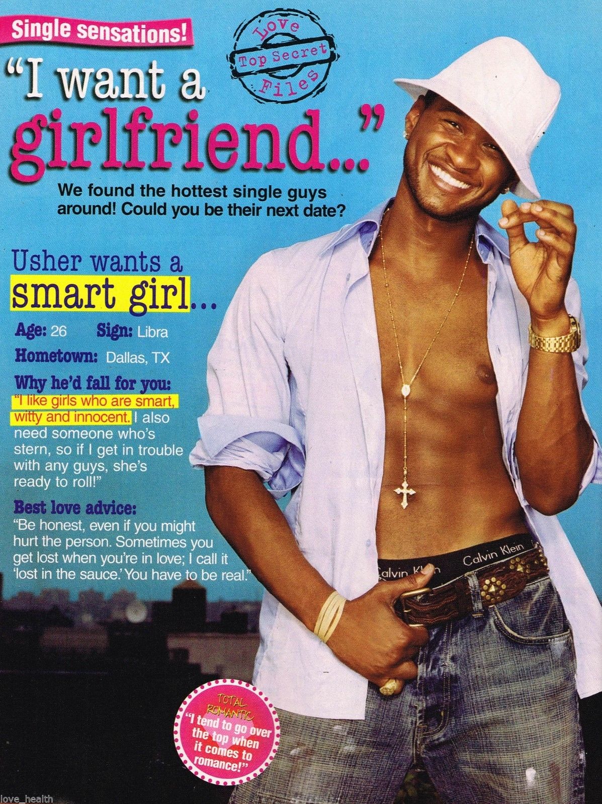 USHER - SHIRTLESS - 11" x 8" MAGAZINE PINUP - POSTER - TEEN BOY SINGER