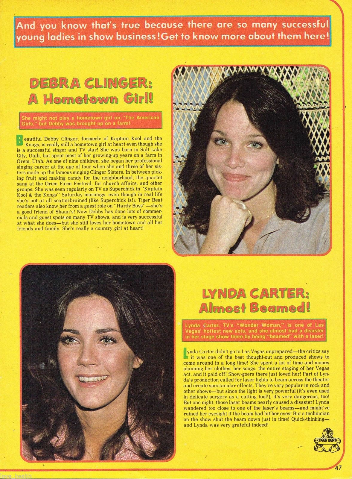 WILLIE AAMES - DEBRA CLINGER - LYNDA CARTER 11" x 8" MAG PINUP CLIPPING TEEN BOY