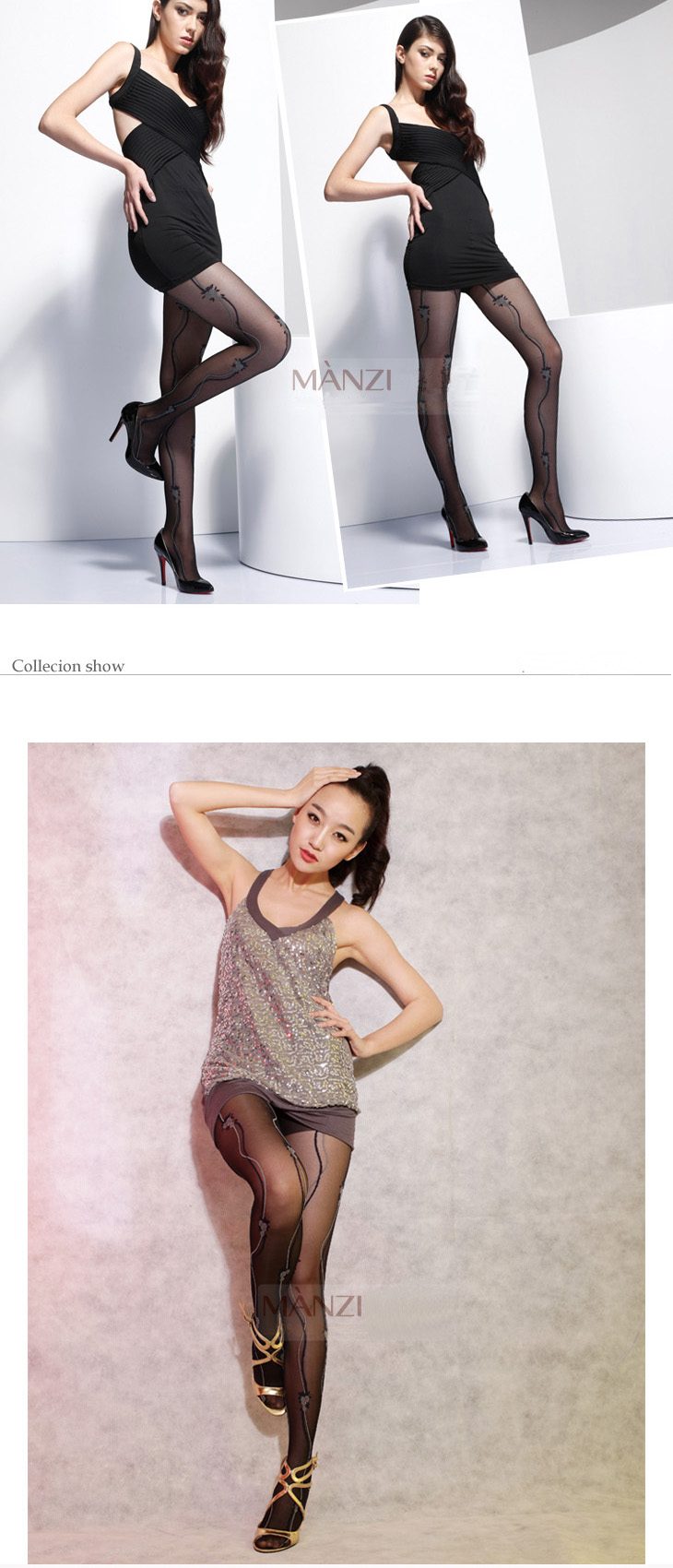 Opaque tights with flower and vine pattern. It is most modern fashion trends. The high quality sheer tight designed by European designers and made by a large manufacturer of 8,000 employees.