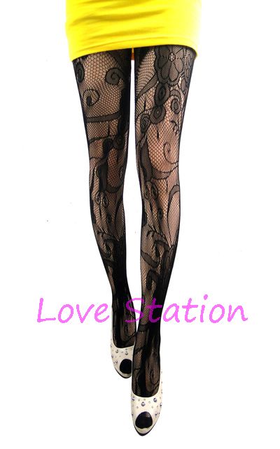 Tattoo Leggings Large Floral Pattern Fishnet Tights F34