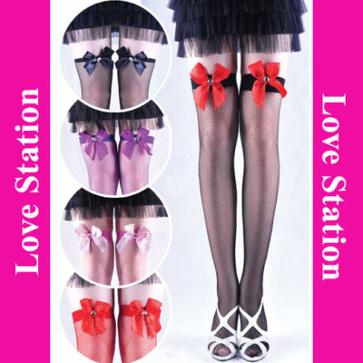 Fashion Fishnet Knee High Stocking Bow with Diamante 47