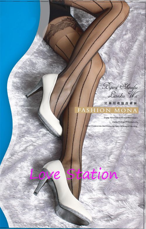 Reinforced waist with flower pattern around high area makes it looks like thigh high stocking. The thin vertical opaque stripes down the legs. The quality sheer tights are made by a large manufacturer of over 4,000 employees. The manufacturer’s main businesses are providing OEM to lots of famous brands. Mengna is the manufacturer’s own brand and it has same quality as some top brands.