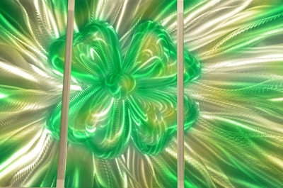 Machined this way the art reflects the lights and looks like it moves with you when you walk past it.