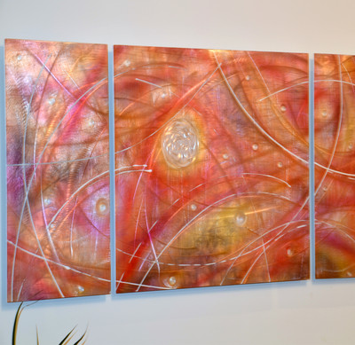 Machined this way the art reflects the lights and looks like it moves with you when you walk past it.