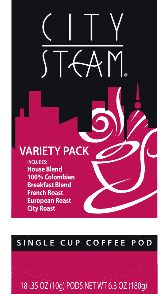 City Steam 17590 Variety Pack Single Cup Coffee Pods, 18-Count