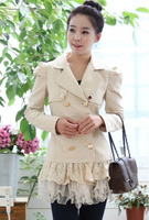 xm12041303 2012 new spring puff long-sleeve coat women double-breasted lace bottom ladies small suit/ coat free shipping This is our facebook page:http://www.facebook.com/ladystore2008. I will give you 5% discount or gifts when you buy products from our shop on the condition you join into the group of our friends and leave message for us. Meanwhile I will issue the latest information about our products and the promotion on this page, please draw attention to us, thank you. Available Sizes: Size | M,L | COLOR | The color of picturel | DETAIL SIZE OF THIS DESIGN | size | M | L | | | | Length | 58.5cm | 59cm | | | | bust | 93cm | 97cm | | | | shoulder | 37cm | 38cm | | | | sleeve | 67.5cm | 68.5cm | | | | Please check the measurement chart carefully. Because of different producing batches, there may be deviation of 2~3 cm | CONDITION | 100% Brand New / Without any accessories | REMARK | Please note that due to limitations in photography and the inevitable differences in monitor settings, the colors shown in the photography may not correspond 100% to those in the items themselves.. | FABRIC | Lace &cotton |