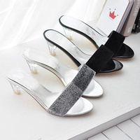 New arrival middle heels special material & crystal heelpiece slides fashion simple /2 colors size in us 4.5 , 5 , 5.5 ,6 , 6.5 , 7 =size in euro 34, 35, 36, 37, 38 ,39 colors: black, gray soles: antiskid soles Insole material: PU leather Upper Material: PU leather Heels:5cm Decoration: purity & crystal heelpiece Seasons: Spring Summer