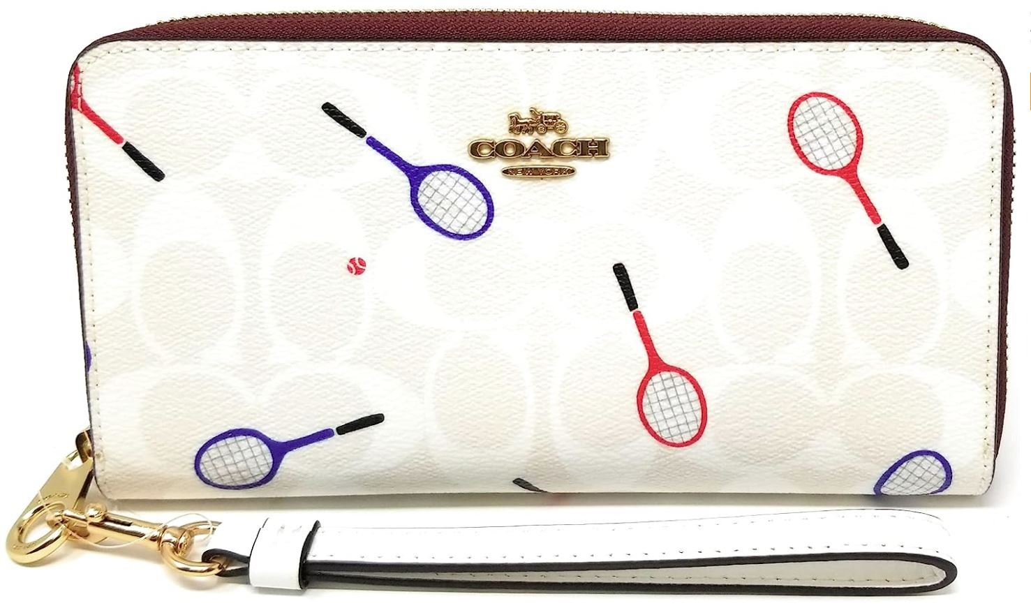 Coach Signature Chalk with Tennis Racquet Print Canvas Zip Around Wallet NWT