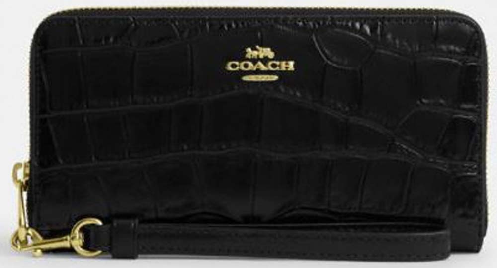 Coach Black Crocodile Embossed Leather Zip Around Wallet Wristlet