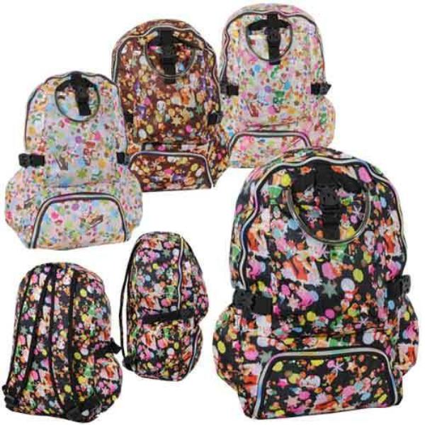 These lovely printed style backpacks made to last This backpack has one large compartment and one small outer compartment, plus an extra compartment on the bottom. It has padded straps built for durability, flexibility and comfort. Heavy duty multi color zipper for durability. Comes in assorted prints Dimensions: 19"" x 11 1/2"" x 8""." Case Pack 36 Please note: If there is a color/size/type option, the option closest to the image will be shipped (Or you may receive a random color/size/type).