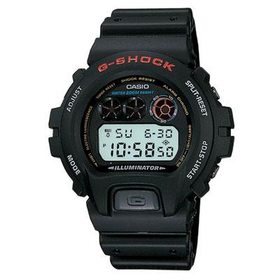 G-Shock Classic Watch featuring Shock resistance, 200M WR, countdown timer, 1/100 sec. stopwatch and auto-calendar. Black resin band digital watch with neutral face.