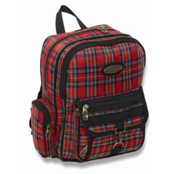 Wholesale Backpacks * Multi-pocket design * 3 assorted plaid designs * Antique finish hardware * Padded back. Junior Size. Size: 13"" x 10"" x 4 ¾"".
