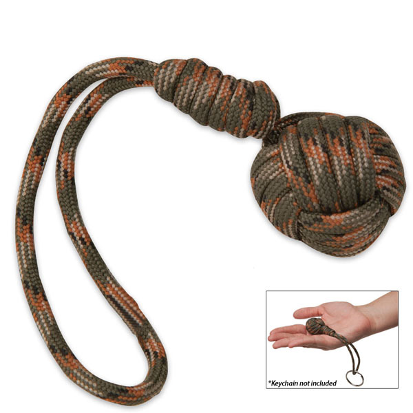 Military grade paracord wrap. Encased steel ball bearing. Can provide a knockout blow.