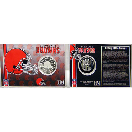 The Highland Mint presents the NFL Team History Coin Card. A 1.5 .999 fine silver plated team coin is presented in a 4 x 6 protective acrylic that also includes each respective NFL Teams history on the back. Includes a team coin measuring 1.5 in diameter (the size of a silver dollar). The Highland Mints special minting process combines frosted areas on the coin with the mirrored areas giving this coin a proof like finish. The coin is struck with the team logo on the front and the NFL shield on the back; each coin is minted right here in the U.S.A. A die cut printed card featuring the team logo on the front and listing the team history on the back accompanies the coin. The Coin and Card are encased in a 4 x 6 acrylic case; limited edition of 1000 pieces; these are officially licensed by the NFL.