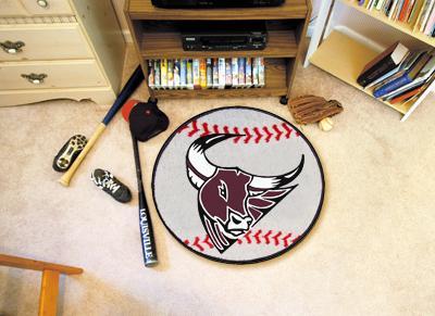 Baseball-shaped area rugs by FANMATS. Made in U.S.A. 100% nylon carpet and non-skid recycled vinyl backing. Machine washable. Officially licensed. Chromojet printed in true team colors. Please note: These products are custom made. The normal lead time is about 7-10 business days. However, the putting mats and carpet tiles do take a little longer, about 14-21 business days.