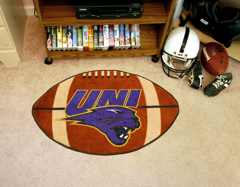 For all those football fans out there: football-shaped area rugs by FANMATS. Made in U.S.A. 100% nylon carpet and non-skid recycled vinyl backing. Machine washable. Officially licensed. Chromojet printed in true team colors. Please note: These products are custom made. The normal lead time is about 7-10 business days. However, the putting mats and carpet tiles do take a little longer, about 14-21 business days.
