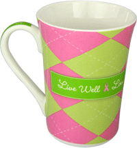 Pink and green argyle with pink ribbons ribbons and printed reminders to