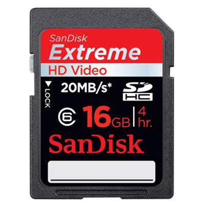 SanDisk Extreme HD Video 16GB SDHC Memory Card... Get the perfect balance of speed and reliability for HD video and faster shot-to-shot performance with SanDisk Extreme HD Video SDHC cards. Delivering Class 6 video performance with up to 20MB/sec read/write speeds you'll be ready to capture HD video on the latest digital point & shoot cameras and DSLRs that have high-definition video recording capabilities. Go with the latest in SanDisk memory optimized for video and enjoy the ultimate in performance and high-def clarity.