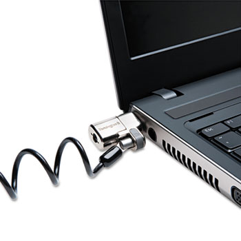 Attaches to computer with just a click--no need to insert a key to secure. Tamper-proof disc-style lock and super-strong steel cable. Includes a portable lock with 6 ft. coiled cable for employees on the go. Lock Type: Cable/Key; Opening Type: N/A; Body Material: N/A; Color(s): N/A.
