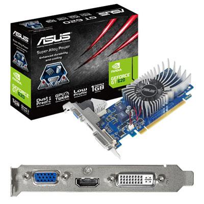 ASUS GT620-1GD3-L is equipped with Super Alloy Power which reaches 15% performance increase 2.5 times longer product lifespan and 35C cooler operation. Dust-Proof Fan design additionally dissipates heat efficiently while expending lifespan by 25%. Moreover ASUS GT620-1GD3-L comes with exclusive GPU Tweak utility which allows users to modify clock speeds voltages and fan performance.