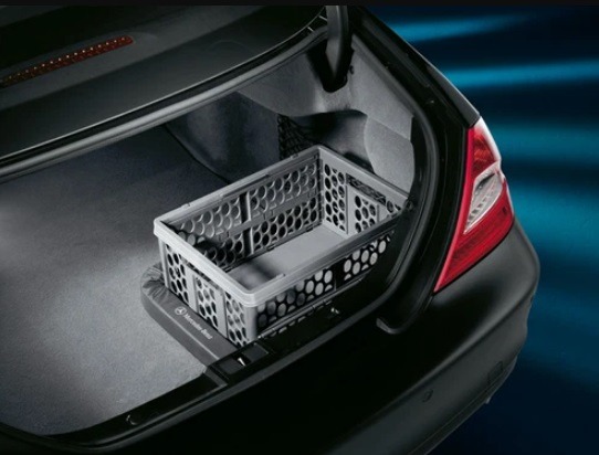 Genuine MERCEDES BENZ Collapsible Storage Shopping Crate _Unopened- A2038400020 OEM cargo box. foldable. end of features Very Handy Accessory for Sedans & Wagons. Nice sized storage basket which makes it really easy for contactless pick-up in this era of social distancing. It's ideal for just opening the rear hatch from the driver's seat and have the attendant "put the small items in the basket" so you don't ever need to get close. Sturdy enough to keep things from rolling around the back of the wagon, and easy to carry inside. When collapsed, it fits perfectly in the compartment where the bottom cushion for the rear facing seat is stored, and is out of the way until you need it. PICK UP Free Shipping