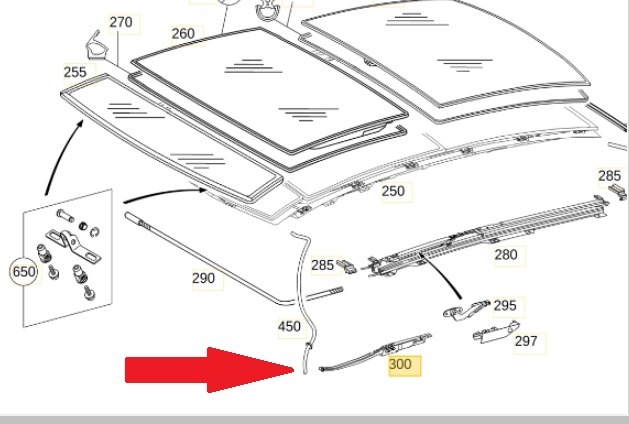 Mercedes ORIGINAL PAIR SUNROOF SIDE DRAFT DEFLECTORS LH & RH WITH PANORAMIC ROOF W211 E320 E350 E500 E550 E63 Part# 2117800175 & 2117800275 E320 E350 E500 MB A2217800175 GERMANY