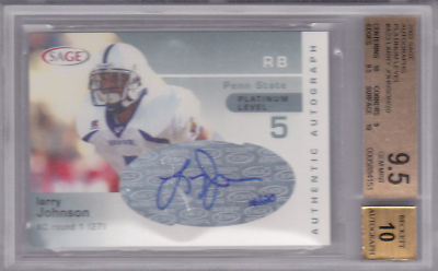 FOR THIS AUCTION: You are bidding on a 2003 Sage Platinum #A23 Larry Johnson Autograph #'d 16/20 Graded 9.5 w 10 Autograph....