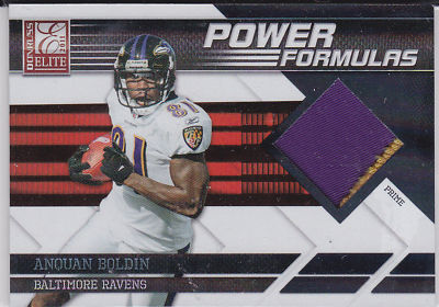You are bidding on a 2011 Donruss Elite Power Formulas #2 Anquan Boldin 2 Color Prime Jersey Card #'d 27/50....Great looking card..Shipping within the United States is $2.89 for the first card and $.25 for each additional card won within a 48hr window..I will send an invoice with the shipping discount..Maximum shipping will be $4.00 within the United States..Payment is due within 7 days after auction ends..Please email any questions you may have..Thank you for looking and good luck..