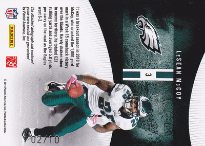 2011 Panini Prestige Preferred Materials LeSean McCoy Autograph/Jersey Card #'d 2/10