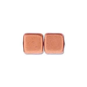 6mm Czech Two Hole Tile Beads - Matte Metallic Copper (50)