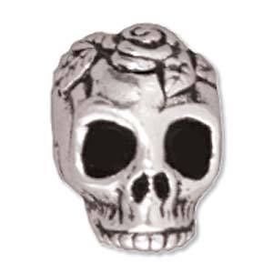 Silver Plated Lead-Free Pewter Skull With Roses Spacer Bead 10mm (1) 36110