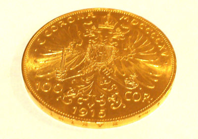 This listing is for a Solid Gold 1915 Austrian 100 Corona Coin This Coin weighs 33.9 grams weighed (very heavy) -->THIS IS NOT A FAKE, COPY, OR MINIATURE THIS IS A REAL SOLID GOLD COIN<-- It is 24k (acid tested) Pure GOLD Bullion The coin is in great shape but is circulated so it has usual wear.